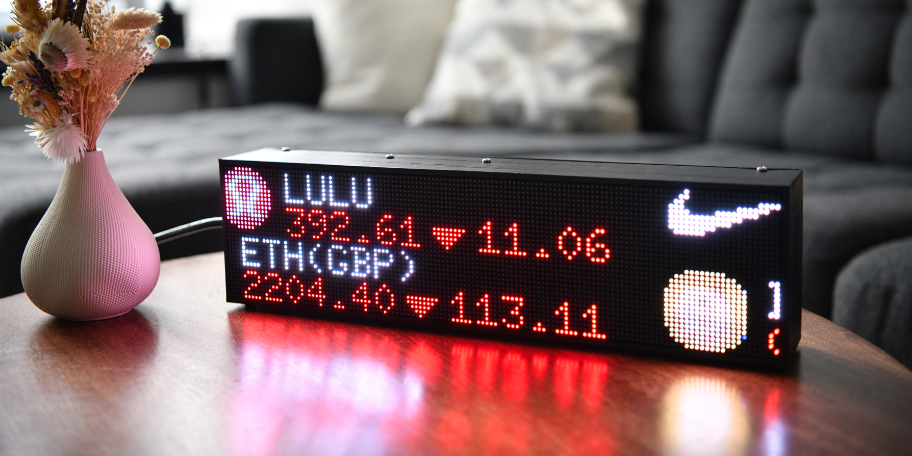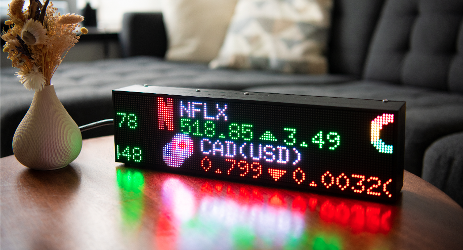 Scrolling LED Ticker - Stocks, Crypto, Forex, Indices, Economic Calendar, News, Weather, Sports, Movies, Jokes, GIFs & Images, Clock + More!